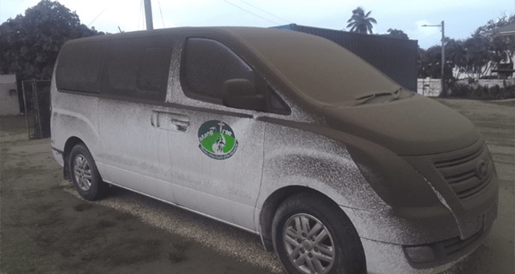 At dawn, I looked outside, and the world was covered in brown as if is some brown-colored snow had rained all over. Overnight, volcanic ash fell along with acidic rain, covering the ground in ash with a thickness of 1-2 cm. We have continued to remove ash from the roof, gutter, walls, yard, and playground of the center”.