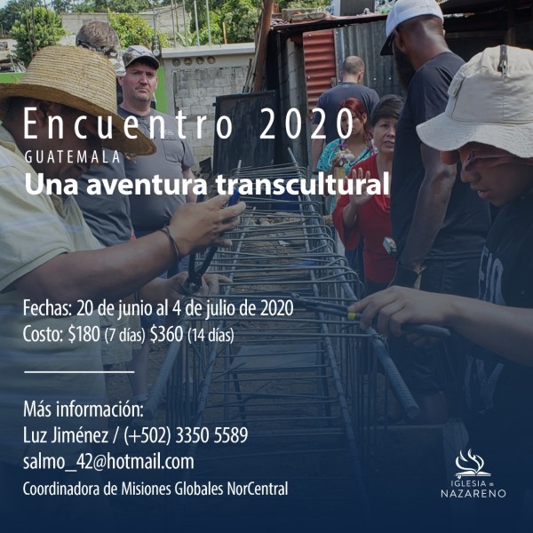 ENCUENTRO GUATEMALA 2020 “Serve and experience transformation” General Description: We seek to offer a two-week missions opportunity in the summer of 2020, where youth from the United States, Canada, and the Mesoamerica Region will minister together, specifically from June 20th to July 4th.... Continue Reading →